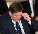 Первый зарубежный государственный визит Президента России в Казахстан. Министр энергетики России Сергей Шматко перед началом официальной встречи президентов России и Казахстана. Встреча прошла в президентском дворце "Ак Орда".