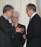 Визит Президента России Дмитрия Медведева в Казахстан. Министр иностранных дел России Сергей Лавров во время официальной встречи президентов России и Казахстана. Встреча прошла в президентском дворце "Ак Орда".