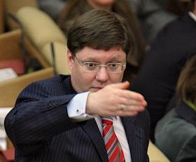 Заместитель председателя Комитета Государственной Думы России по бюджету и налогам Андрей Макаров (слева) на заседании Госдумы.