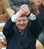 Заместитель председателя Комитета Государственной Думы России по собственности Юрий Медведев во время думского заседания.