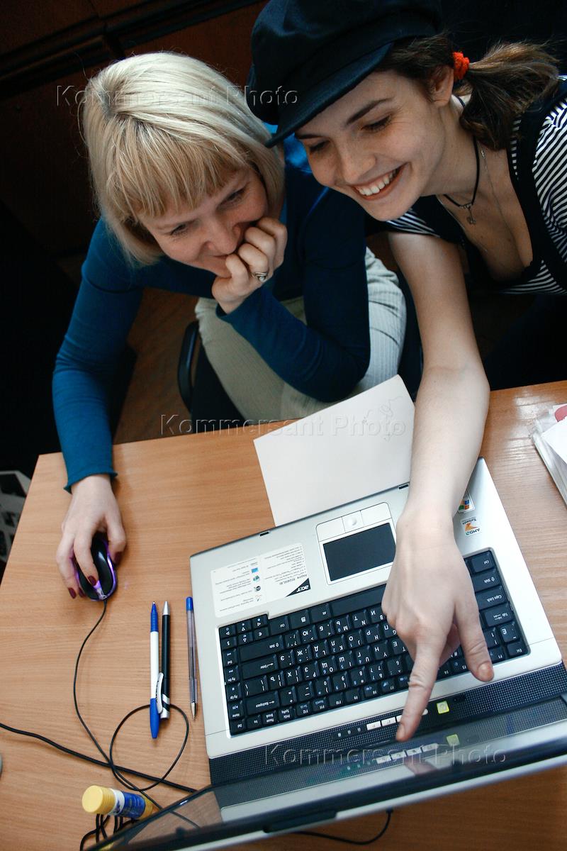 Девушки у экрана монитора.