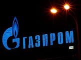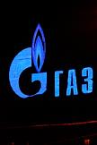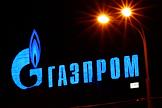Световая вывеска компании "Газпром" на крыше здания.