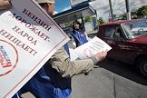 Активисты "Молодой Гвардии Единой России" провели пикет против автозаправок, взвинчивающих цены на бензин. Плакат "Бензин дорожает - народ нищает!".