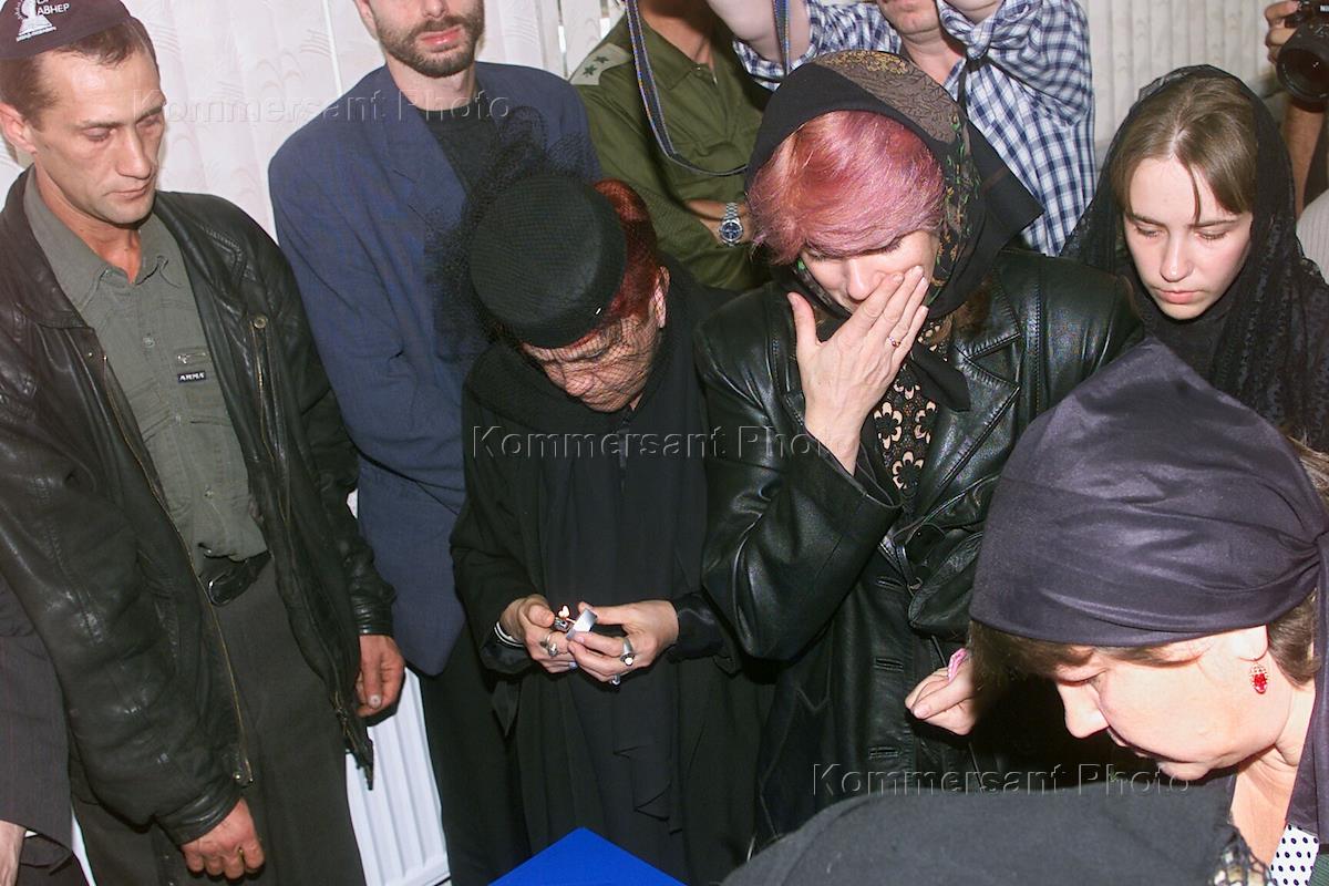 Женщина в черном платке и с фотографией в руках оплакивает родственников, погибших в авиакатастрофе самолета ТУ-154 авиакомпании "Сибирь", совершавшего рейс "Тель-Авив-Новосибирск". В результате падения самолета все пассажиры и члены экипажа погибли. Родственники прибыли на место крушения самолета.