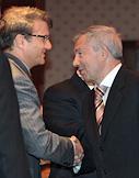 Глава Сбербанка России, член совета директоров ОАО "Газпром" Герман Греф (слева) и член совета директоров ОАО "Газпром" Фарит Газизулин (справа) во время встречи Президента России Дмитрия Медведева с членами совета директоров и правления РАО "Газпром".