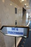 Указатель "Лифт на спецобслуживании" в здании РАО "Газпром".