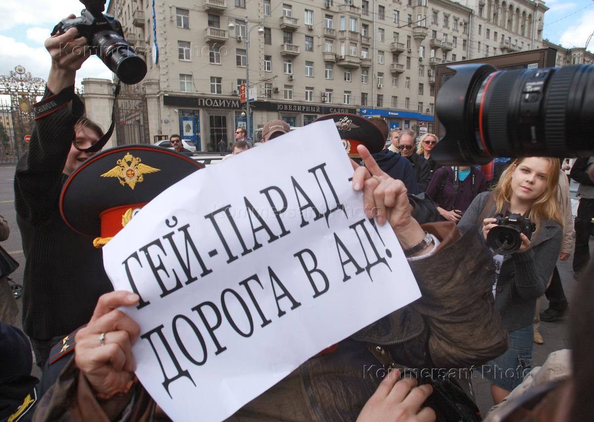 Акция противников проведения гей-парада прошла на Тверской улице.