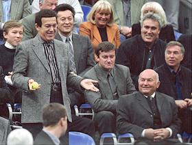 Мэр Москвы Юрий Лужков на трибуне среди болельщиков финала турнира по теннису "Кубок Кремля", который состоялся в спортивном комплексе "Олимпийский"