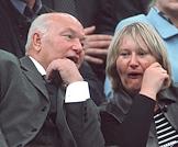 Мэр Москвы Юрий Лужков (слева) и его супруга Людмила Батурина (справа) во время финала турнира по теннису "Кубок Кремля", который состоялся в спортивном комплексе "Олимпийский".
