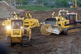 Председатель Правительства России Владимир Путин (справа) и президент концерна "Тракторные заводы" Михаил Болотин (слева) во время посещения тракторного шоу на стадионе "Крылатское".