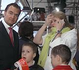 Актриса Анна Михалкова (в центре) с сыновьями во время посещения тракторного шоу на стадионе "Крылатское".