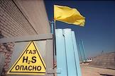 Предприятие "Астрахань-Газпром". Знак "Газ H2S (сероводород) Опасно!".