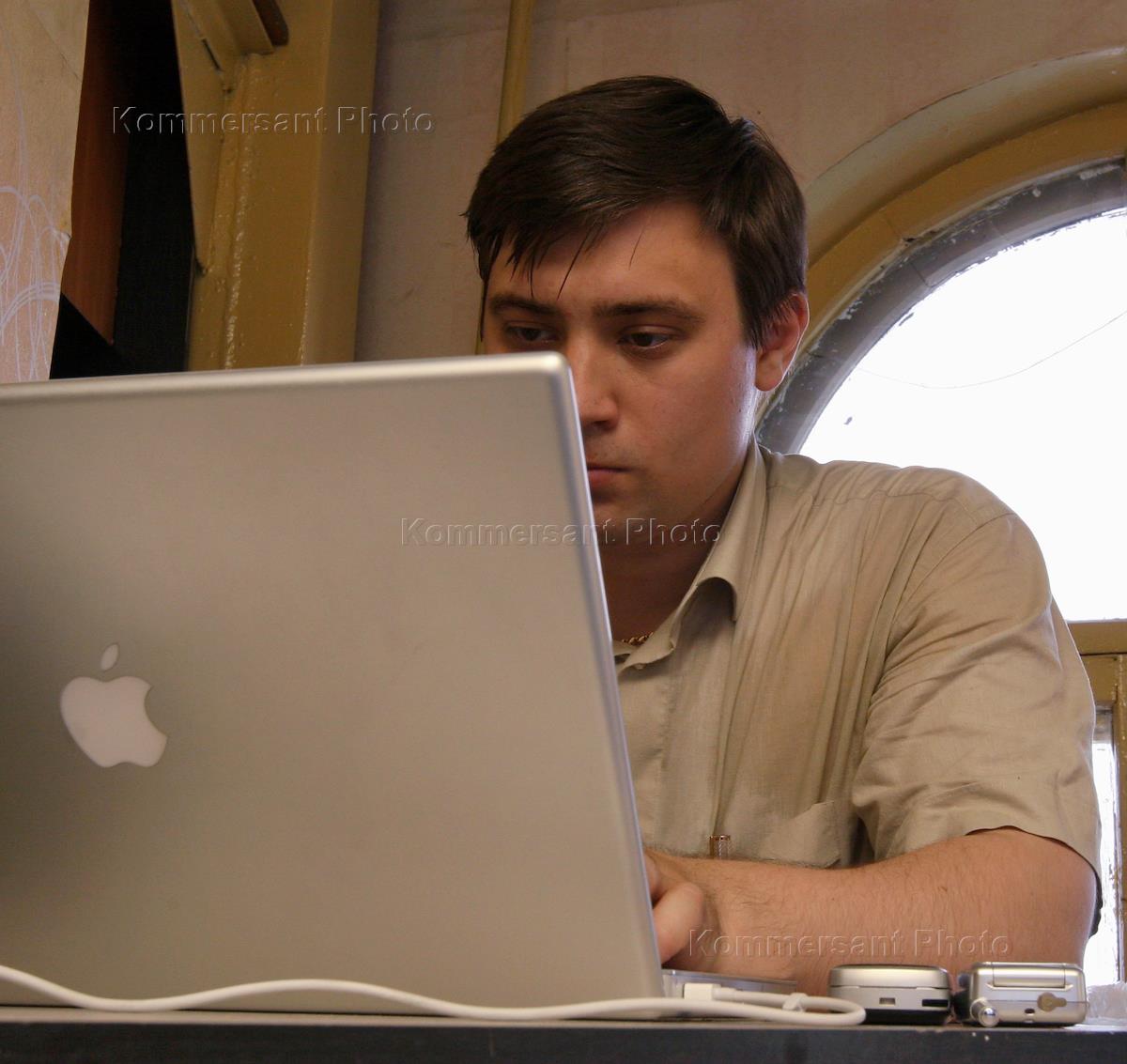 Organizer coworking center "Tower" Aleksey Glazkov during the interview.