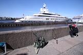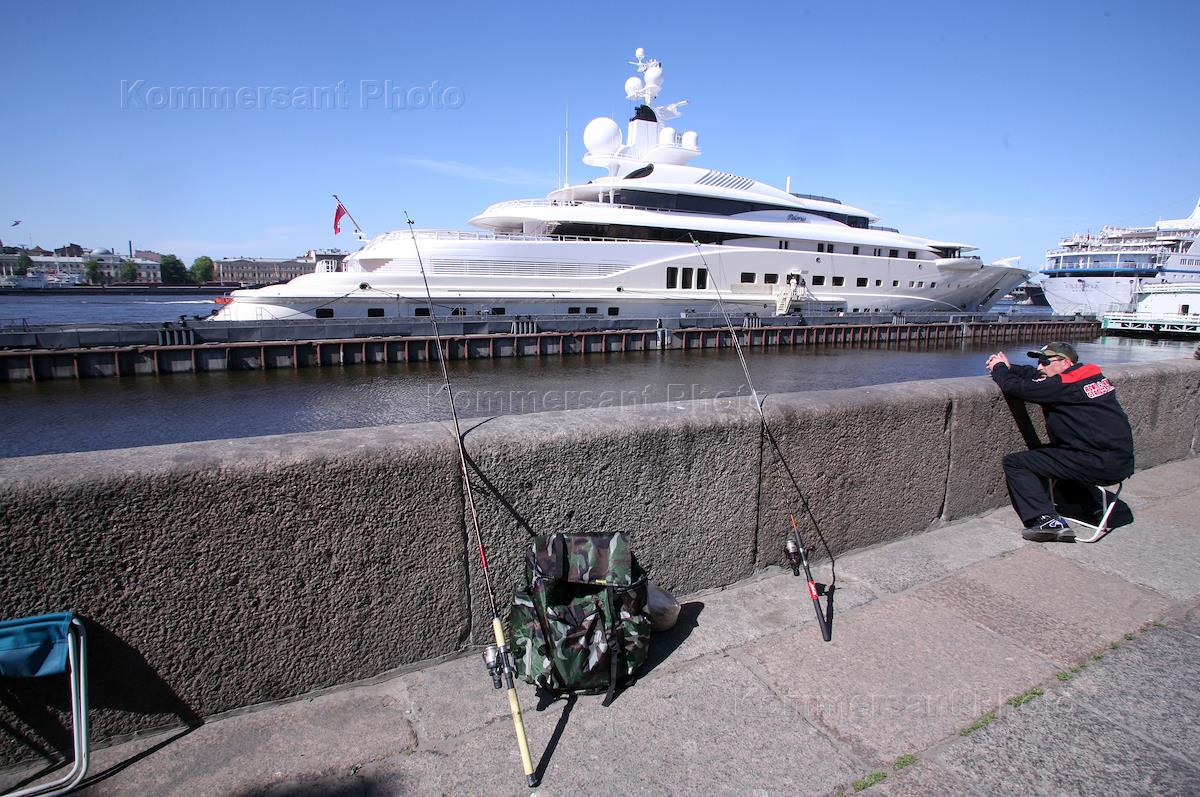 Яхта "Pelorus" (Пелорус), принадлежащая губернатору Чукотского автономного округа Роману Абрамовичу, пришвартованнная у Английской набережной.
