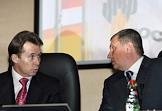 Член Совета директоров, Президент ОАО "НК "Роснефть" Сергей Богданчиков (справа) и председатель Совета директоров ОАО "НК "Роснефть", заместитель председателя Правительства России Игорь Сечин (слева) на общем годовом собрании акционеров ОАО "НК "Роснефть".
