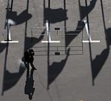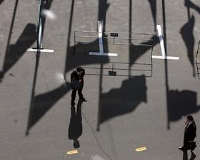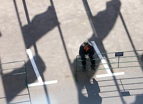 Жанровая фотография. Человек стоит на автомобильной парковке у центрального офиса ОАО "НК "Роснефть".