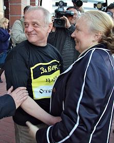 Полковник ГРУ Владимир Квачков (слева) с женой после освобождения. В Московском областном суде коллегия присяжных оправдала троих обвиняемых по делу о покушении на главу РАО ЕЭС Анатолия Чубайса в марте 2005 года.