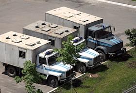Автомобили для перевозки заключенных на площади у здания Московского областного суда.