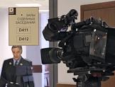 Телекамера и указатель залов судебных заседания Московского областного суда.