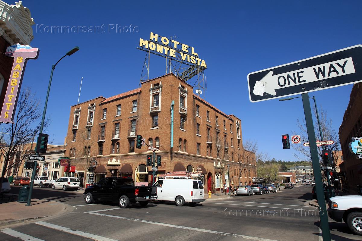 Виды США. Штат Аризона. Город Флагстафф. Посетители в уличном кафе.