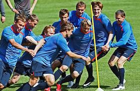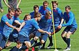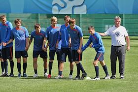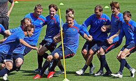 Игроки сборной России по футболу на тренировке перед матчем со сборной командой Испании на чемпионате Европы по футболу 2008.