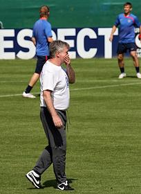 Чемпионат Европы по футболу 2008. Главный тренер сборной России по футболу Гус Хиддинк на тренировке игроков сборной России перед матчем со сборной Испании.