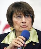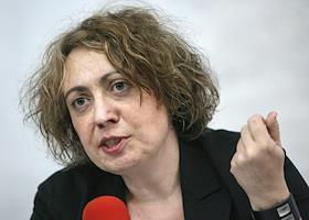Искусствовед Екатерина Деготь во время проведения мастер-класса французским арт-критиком, главным редактором парижского журнала "Арт-Пресс" Катрин Милле в Центре современного искусства (ЦСИ) "Винзавод".