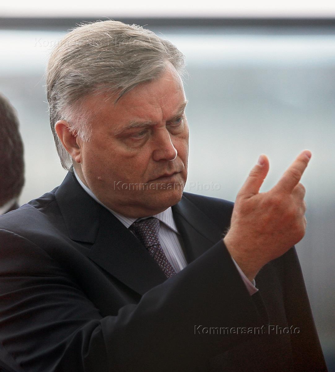 Президент ОАО "Российские железные дороги" (РЖД)Владимир Якунин во время презентации проекта регулярного железнодорожного сообщения между Савеловским вокзалом и аэропортом "Шереметьево".