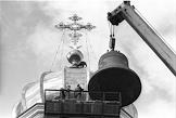 Строительство Храма Христа Спасителя. Поднятие соборного колокола на колокольню.