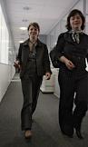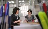 Заместитель руководителя учебного центра банка BSGV Вера Кудряшова (справа) и тренер учебного центра Анастасия Федорова (слева)во время интервью в своем офисе.