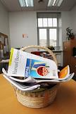 Интерьеры помещений Учебного центра банка BSGV. Журналы в плетенной корзинке.