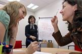 Заместитель руководителя учебного центра банка BSGV Вера Кудряшова (в центре) во время проведения занятий в центре.