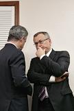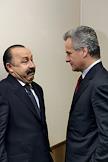 Главный тренер футбольной команды ЦСКА Валерий Газзаев (слева) и помощник Президента России Сергей Ястржембский (справа) во время подписания договора между Внешторгбанком (ВТБ) и Профессиональным клубом "ЦСКА", в соответствии с которым ВТБ получил статус "Генеральный спонсор Профессионального футбольного клуба ЦСКА".