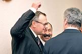 Помощник Президента России Сергей Ястржембский во время подписания договора между Внешторгбанком (ВТБ) и Профессиональным клубом "ЦСКА", в соответствии с которым ВТБ получил статус "Генеральный спонсор Профессионального футбольного клуба ЦСКА".