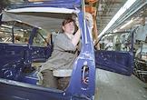 Конвейер в цехе сборки автомобилей "Ока" для инвалидов. Завод находится в городе Серпухов.