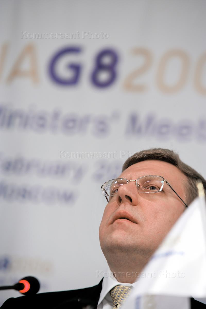 Министр финансов России Алексей Кудрин на пресс-конференции в рамках встречи министров финансов Cтран Большой Восьмерки "G8" в Москве.