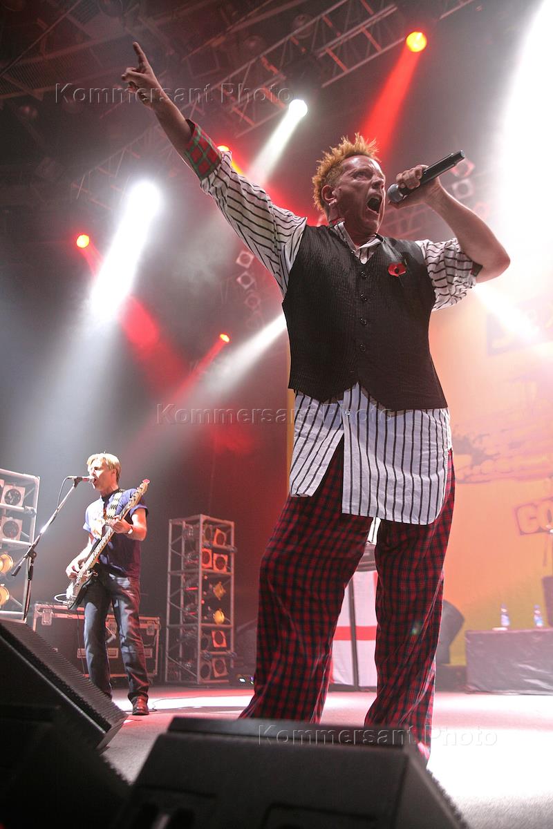 Вокалист британской панк-группа "The Sex Pistols" Джонни Роттен во время выступления на сольном концерт группы "Секс Пистолс" ("The Sex Pistols") во Дворце спорта "Юбилейный".