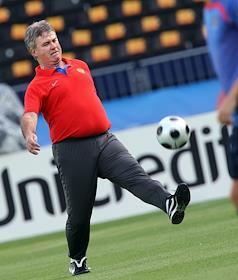 Главный тренер сборной России по футболу Гус Хиддинк во время тренировки сборной команды России перед полуфинальным матчем со сборной Испании.