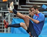 Нападающий российской сборной Андрей Аршавин (слева) на тренировке сборной команды России перед полуфинальным матчем со сборной Испании.