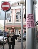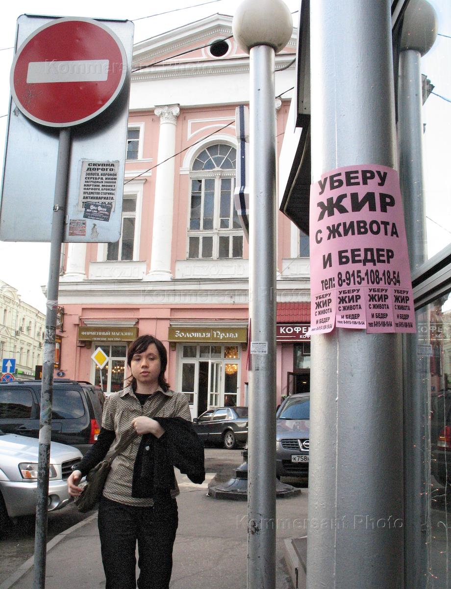 Виды Москвы. Рекламное объявление на столбе "Уберу жир с живота и бедер".