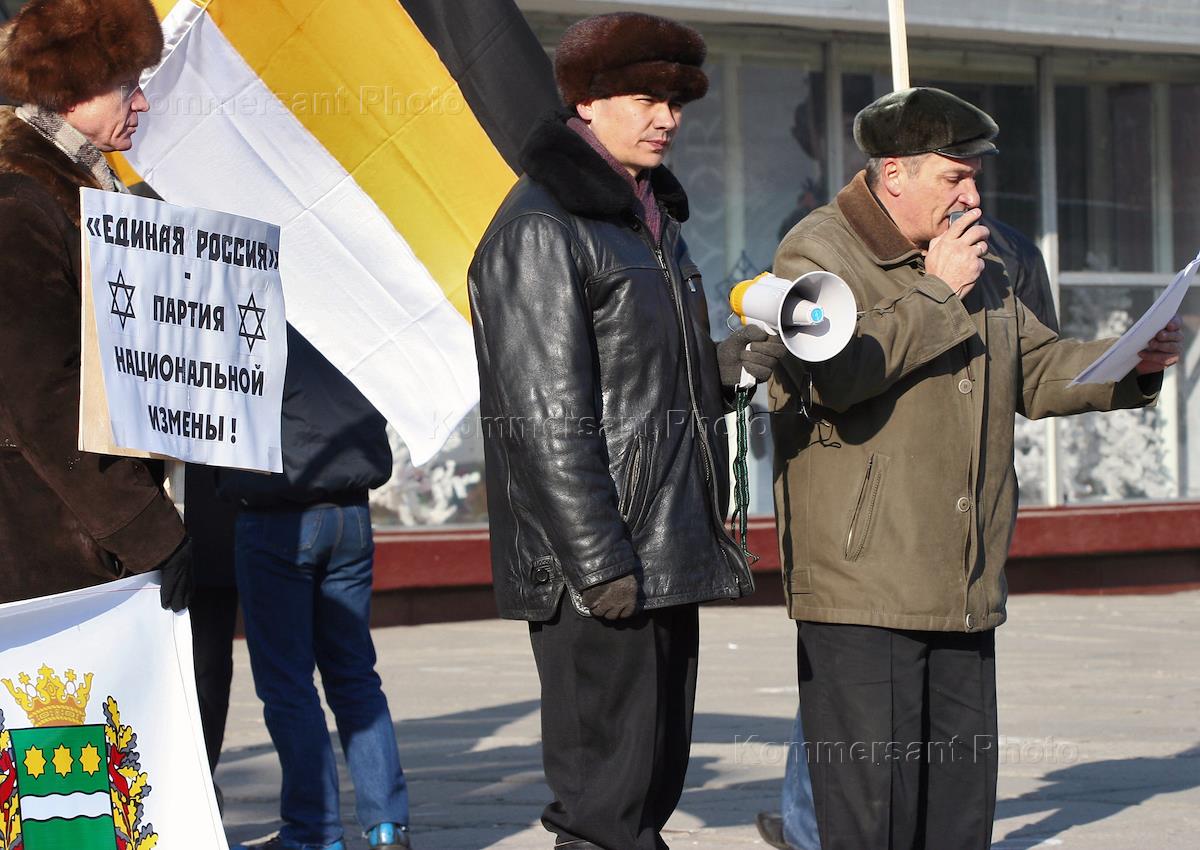 Лидер Амурского отделения "Союза русского народа" ("СРН") Игорь Терехов (в центре) во время митинга.
