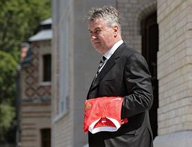 Главный тренер сборной команды России по футболу Гус Хиддинк во время встречи Президента России Дмитрия Медведева с игроками сборной России по футболу. Встреча прошла в подмосковной президентской резиденции в Барвихе.