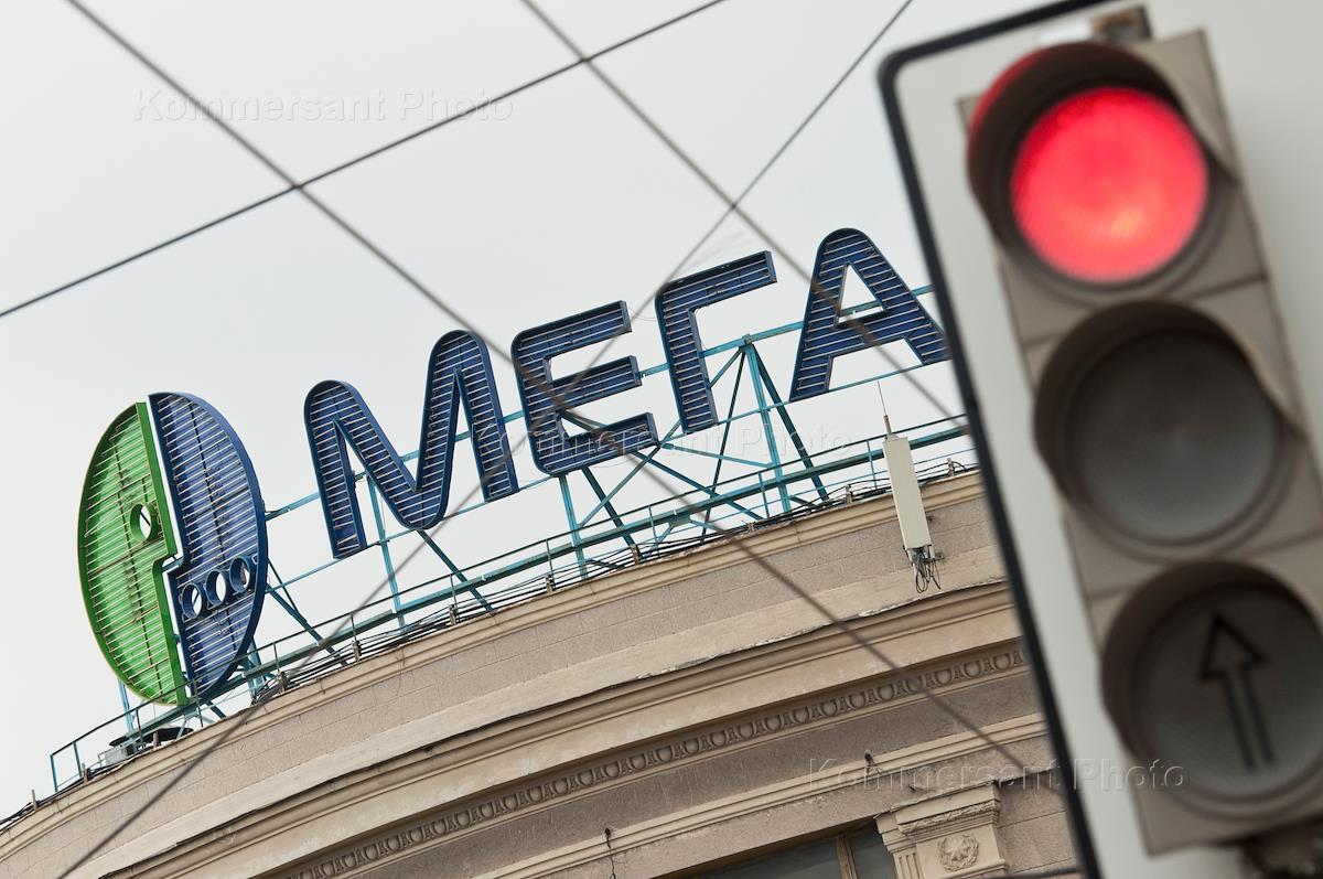 [English translation in progress (2)] Cars pass by interior of cellular communication of MTS.