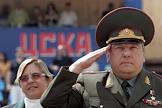 Соревнования по конкуру Открытого Кубка Вооруженных Сил Российской Федерации прошли на конно-спортивной базе ЦСКА. Советник министра обороны России Владимир Шаманов (справа) во время церемонии награждения победителей.