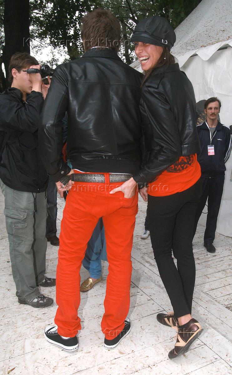 The soloist of group Moralnuj codex Sergey Mazaev (at the left) with his wife Galina (on the right) on solemn closing of Years Olympiad "World Class 2008" in Beach Club.