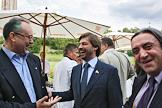 Руководитель департамента по связям с общественностью холдинговой компании "Росгосстрах" Андрей Бирюков (слева) и начальник отдела по связям с общественностью ООО "ЛУКОЙЛ-Центрнефтепродукт" Михаил Михайлов (в центре) на церемонии вручения национальной премии "Медиа-менеджер России 2008".