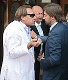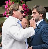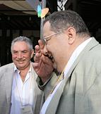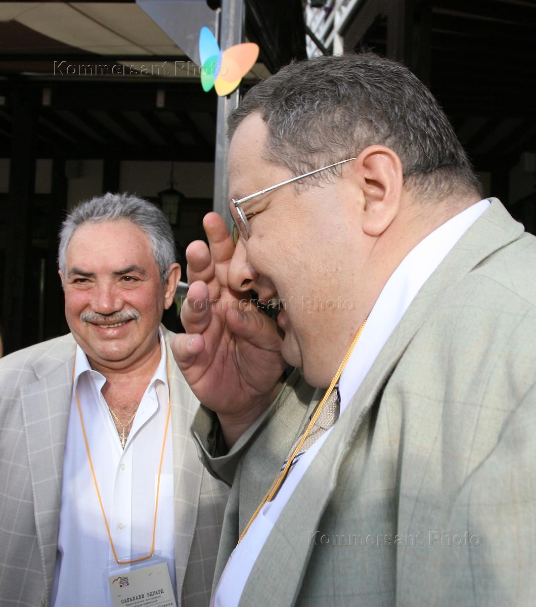 Генеральный директор ОАО "Ньюс медиа" Арам Габрелянов (слева) и генеральный директор PR-агентства "Тайный советник" Леонид Левин (справа) на церемонии вручения национальной премии "Медиа-менеджер России 2008".