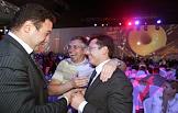 Председатель совета директоров группы компаний "Автотор" Владимир Щербаков (слева) и первый заместитель мэра в правительстве Москвы Юрий Росляк (справа) на мировой премьере автомобиля "BMW" 7-й серии на Васильевском спуске.