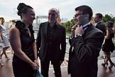 Председатель совета директоров ОАО "Автодом" Андрей Костин (в центре) с супругой (слева) и директор по маркетингу BMW Group Russia Арсен Балаян (справа) на мировой премьере автомобиля "BMW" 7-й серии на Васильевском спуске.