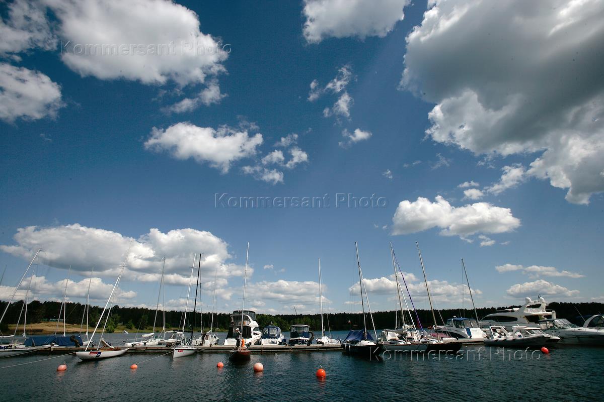 Яхты у причала в загородном комплекс-курорте "Пирогово".